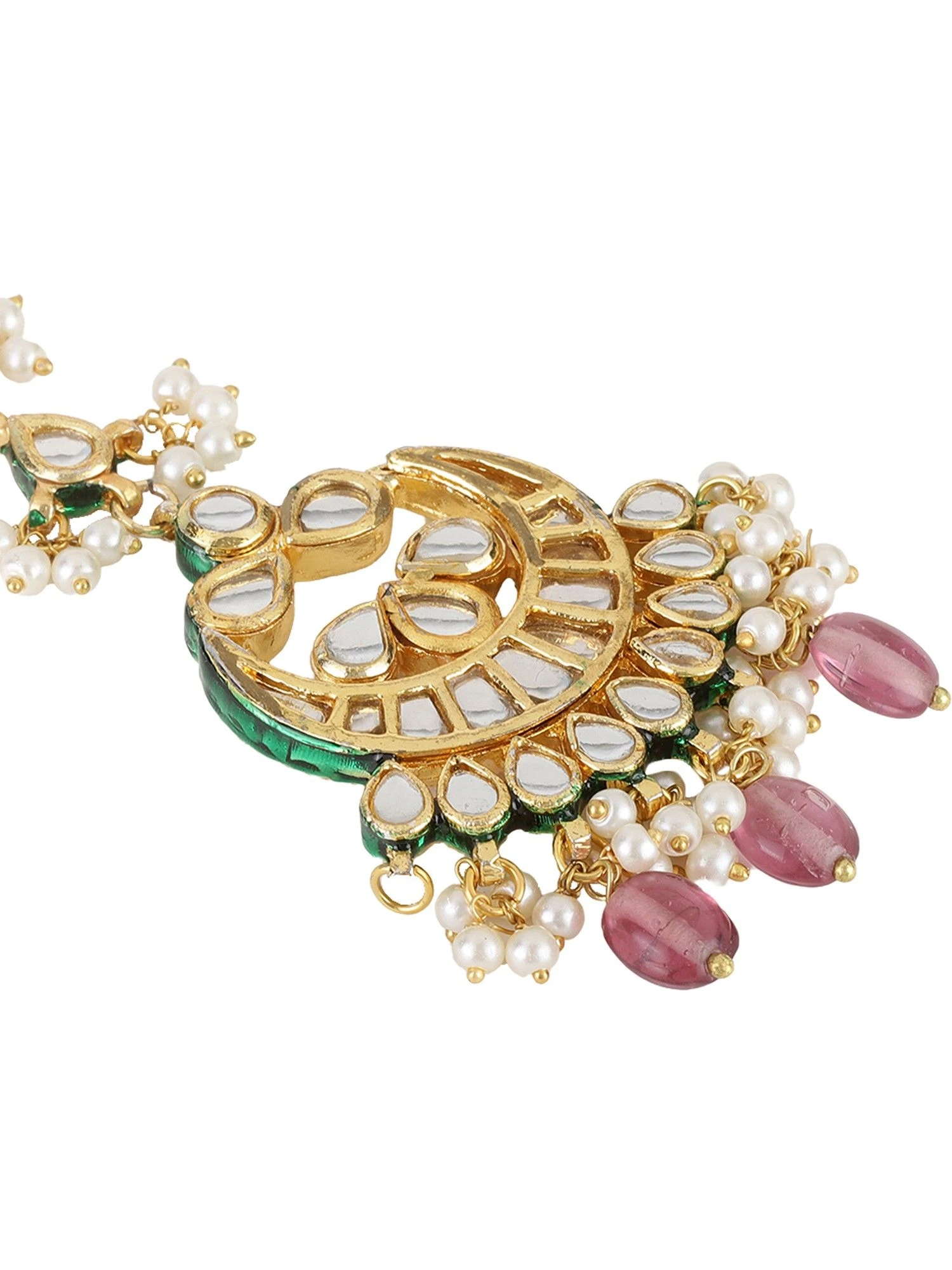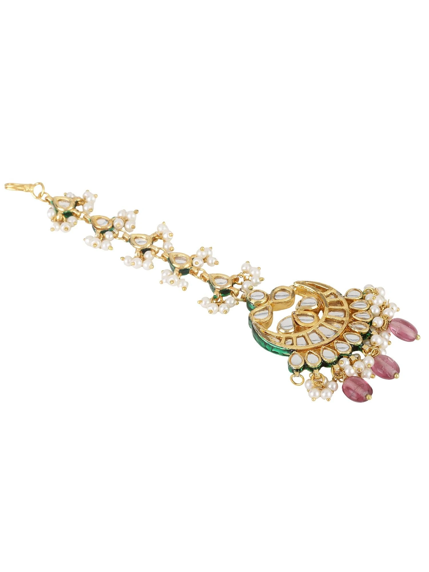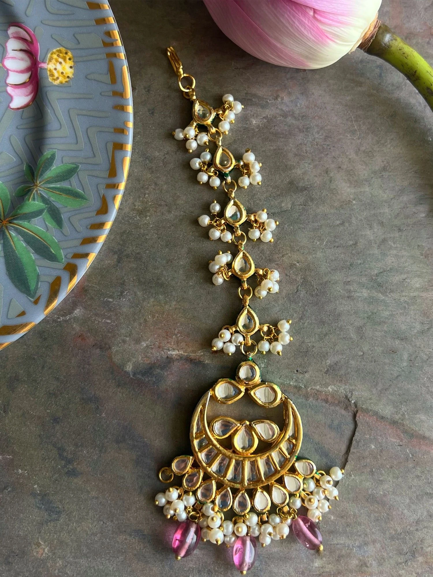 Maharani Kundan Mangtika is such a lovely Indian traditional headpiece. From evenings to festive to weddings – it will add „oomph“ to your beautiful look! Wear them with our Maharani Kundan Chaandbaali and Maharani Open Bangle for the complete look. The Rani Collection by Amaltaas is made in Metal with Gold Dip and an Antique look. This collection is handcrafted; made with love by artisans, which means that no two products are alike and every piece is unique to you.