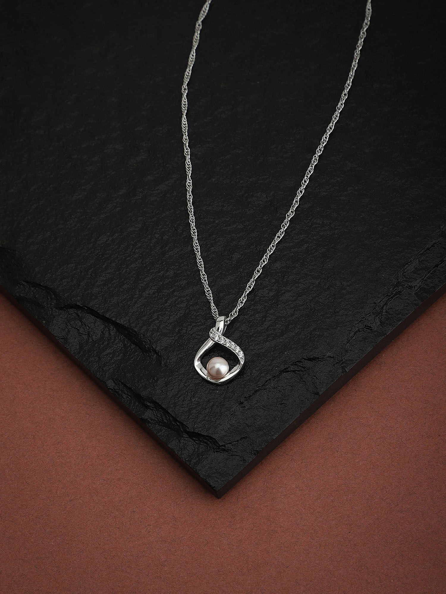 925 Sterling Silver Rhodium Plated Pearl Beaded Necklace 45 cm (Length)