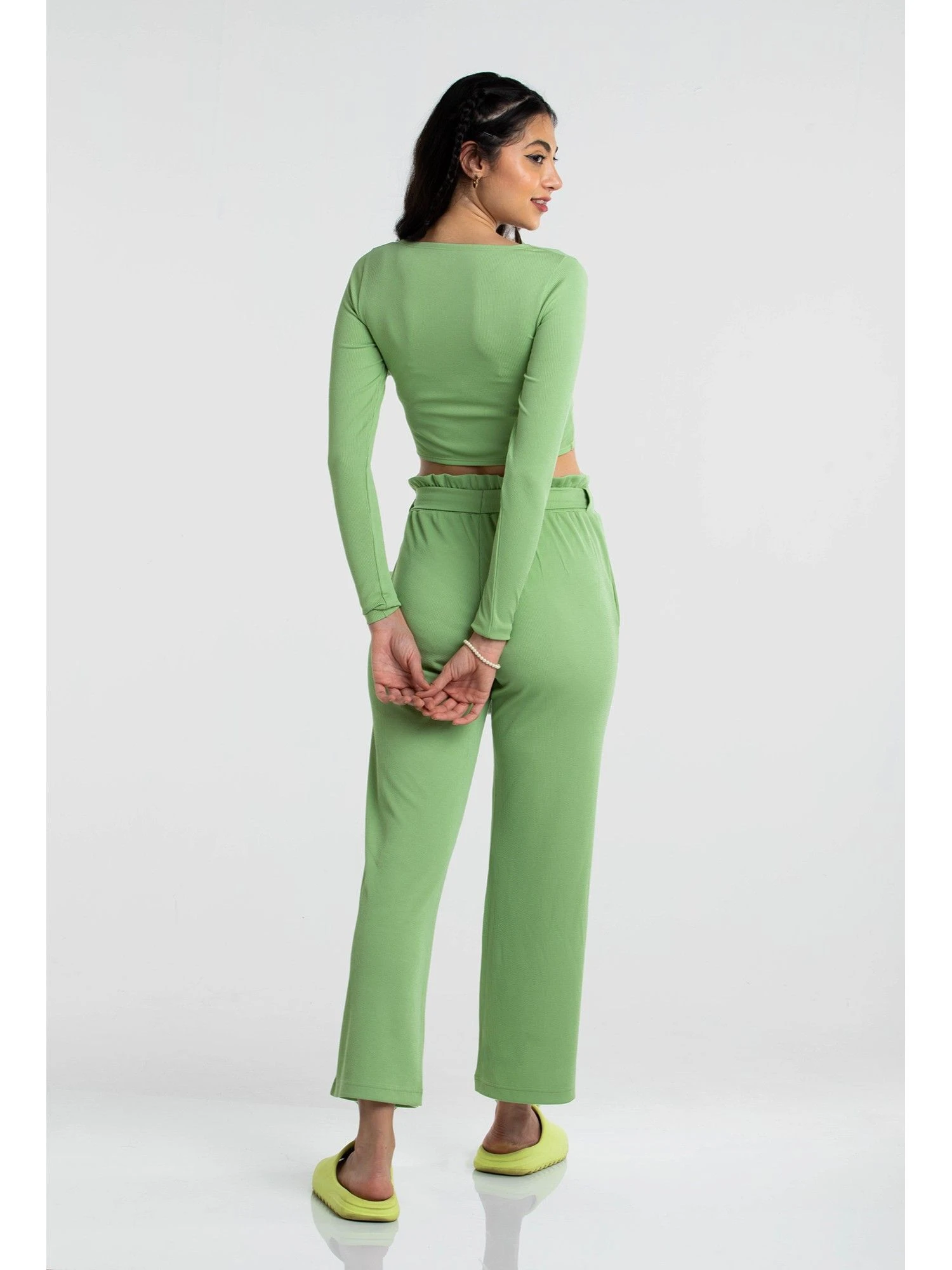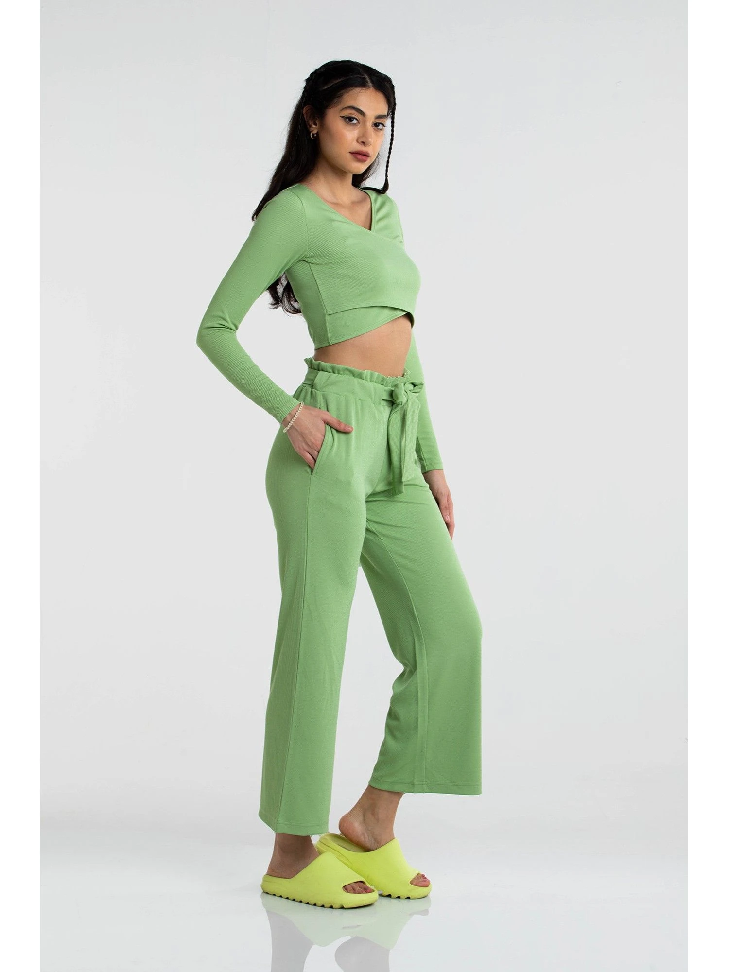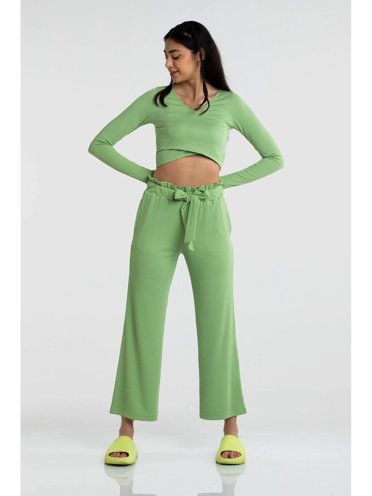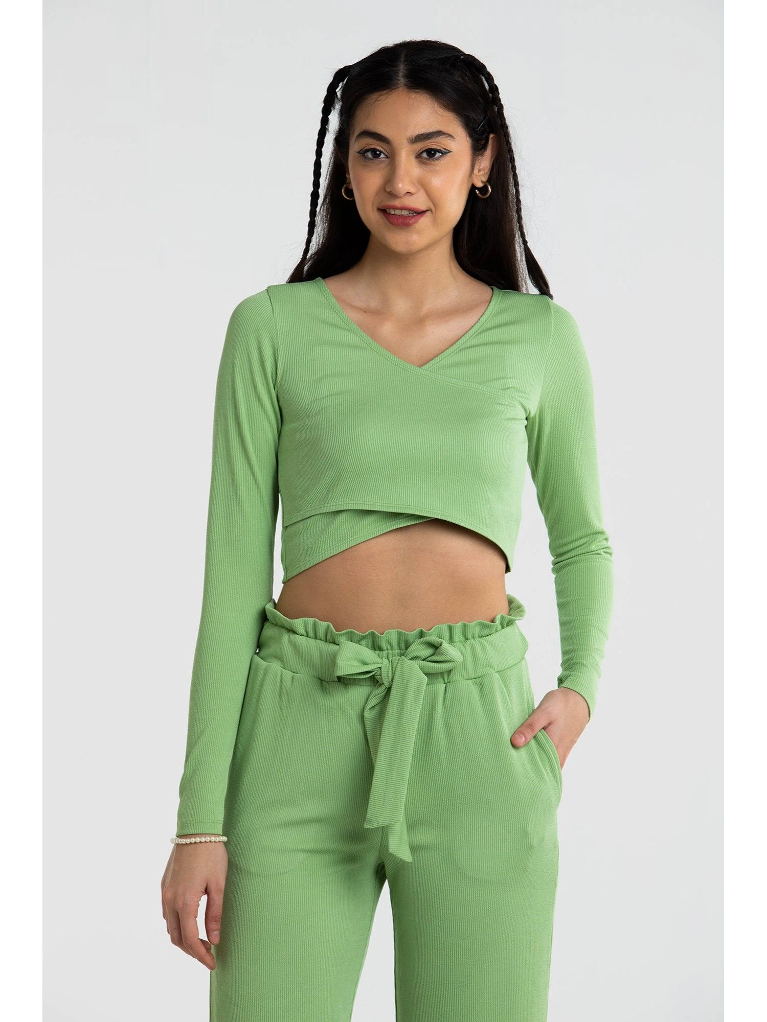 Update your lounge collection with this binder top from Cava Athleisure. Featuring a rib material that will not stick and give you the perfect fit, the crop top has a criss-cross wrap design with full sleeves. Style up with the matching binder pants for a combo we are loving!