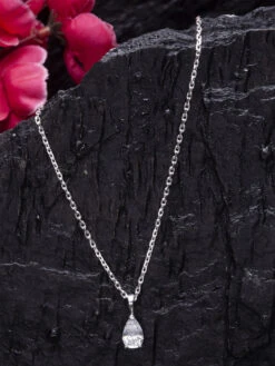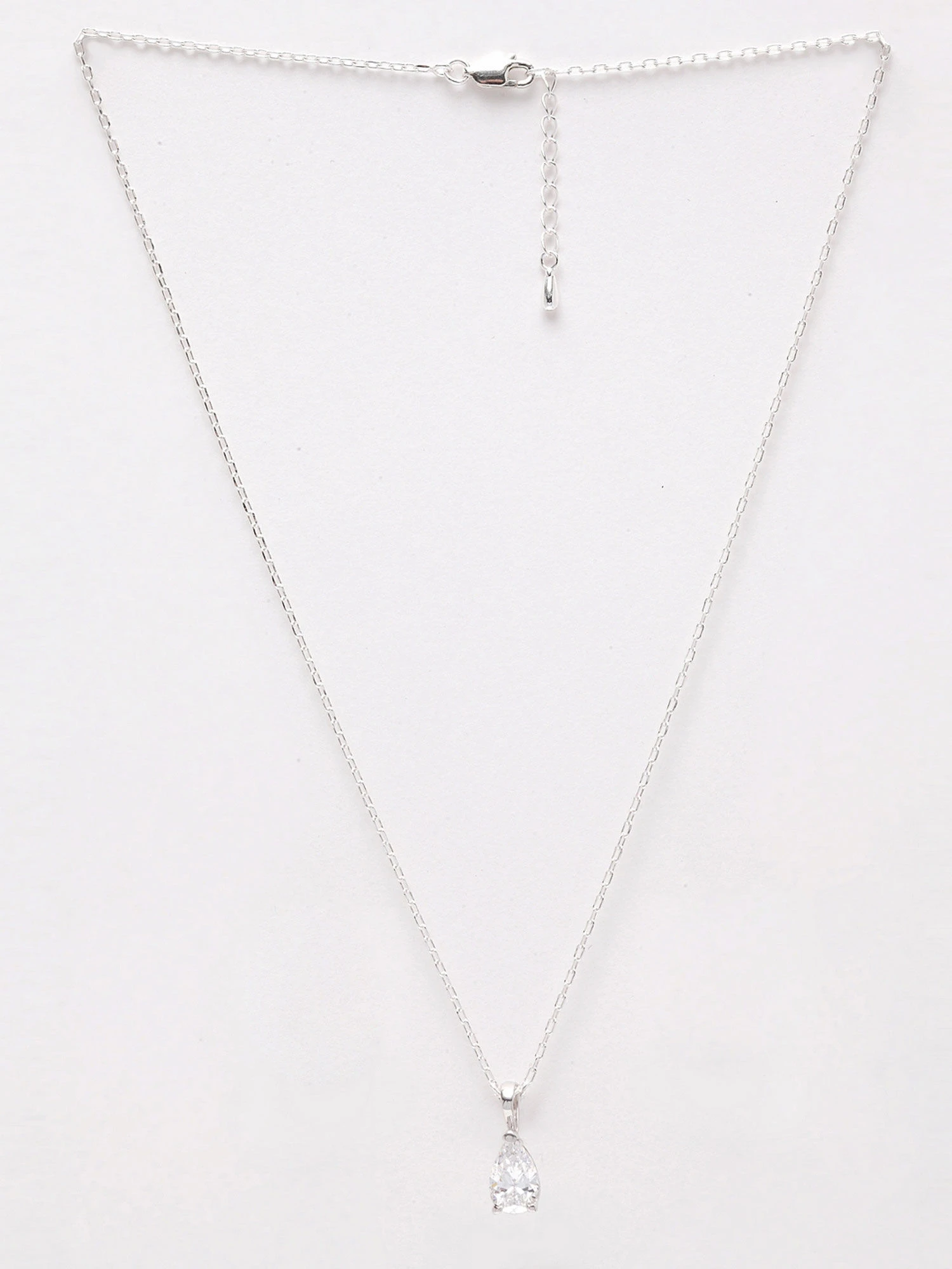 CLARA Sterling Silver Rhodium Plated Pear Pendant Necklace With Chain Gift For Women And Girls