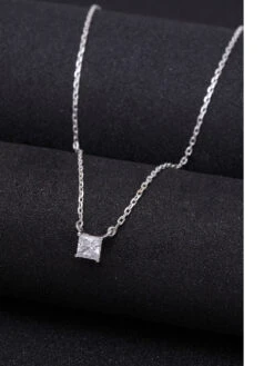 CLARA Sterling Silver Rhodium Plated Square Pendant Necklace With Chain Gift For Women And Girls