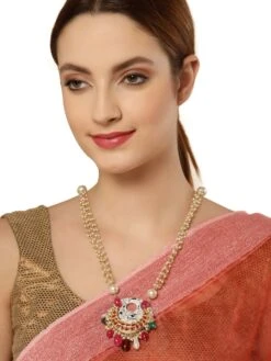 Dugran By Dugristyle Red & White Kundan Haar Necklace