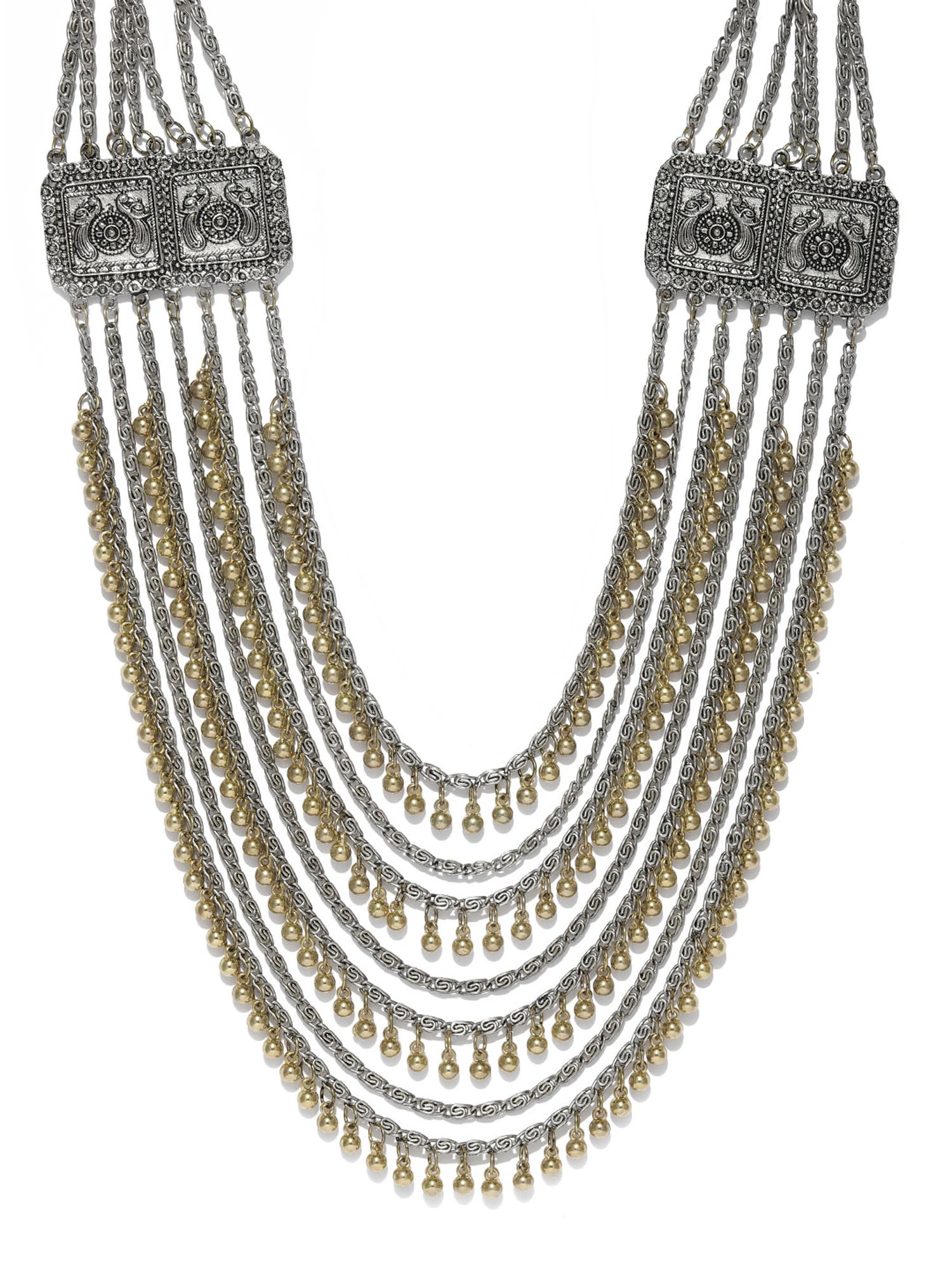 Fida Ethnic Traditional Oxidised Silver Two Tone Layer Statement Necklace For Women