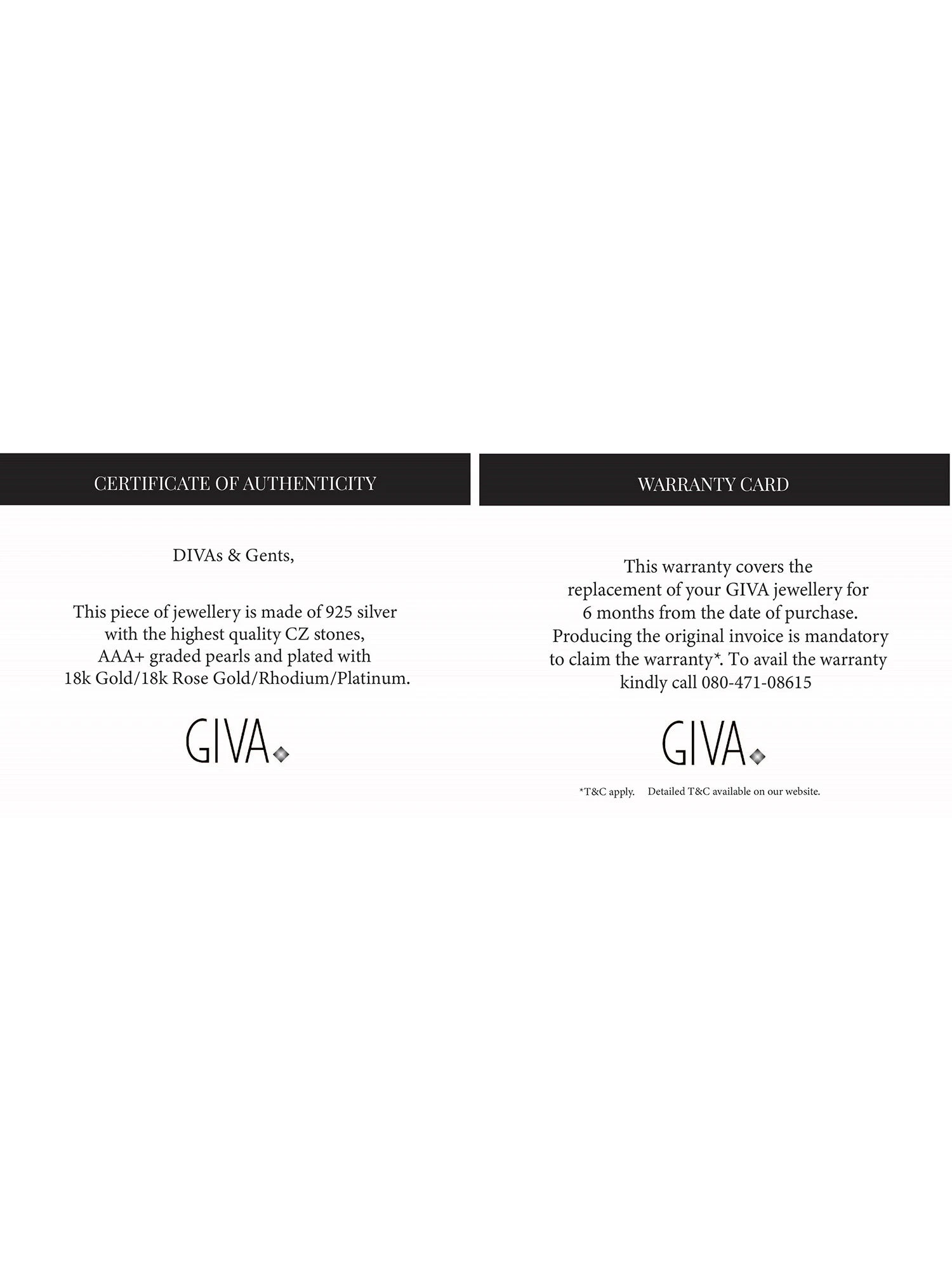 Store The Jewellery In Giva Jewellery Box Provided By Us, Or In Plastic Ziplock Bag. Prevent Contact From Perfumes, Soaps, Water, Humidity, Moisture, Extreme Temperature Or Anything Acidic.