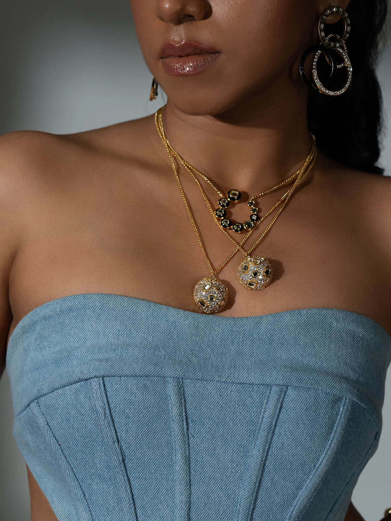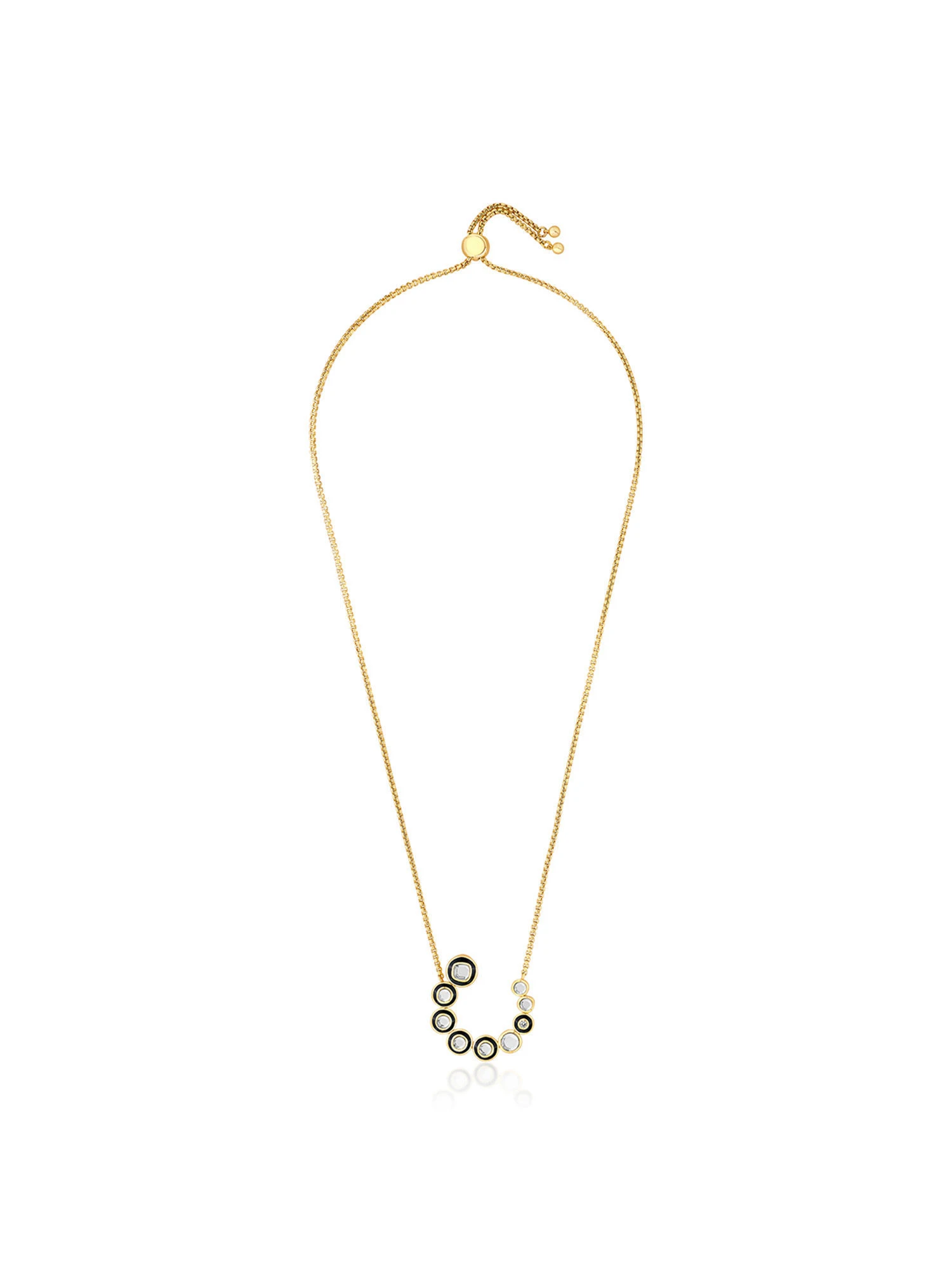 Add a touch of personality to any outfit with this 18-karat gold-plated necklace featuring CZ and mirrors. The simple and sleek geometric design is rimmed with enamel to make it versatile enough to be dressed up or down.
