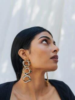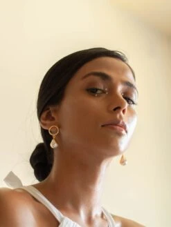 Dhwani Bansal Classic & Minimal Lulu Drops In Gold Plated Texture Brass & Gold Dipped Baroque Pearls