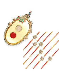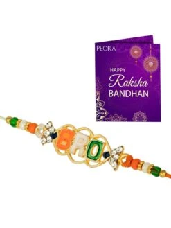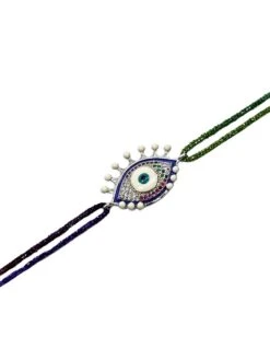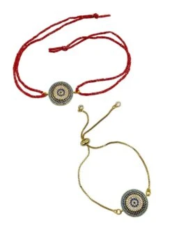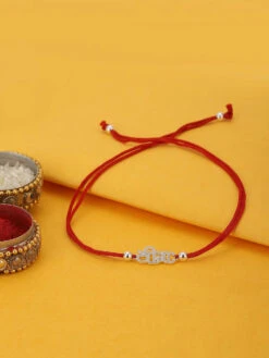 Digital Dress Room American Diamond Om Designer Silver Rakhi Bracelet For Brother-Bhabhi (Pack Of 2)