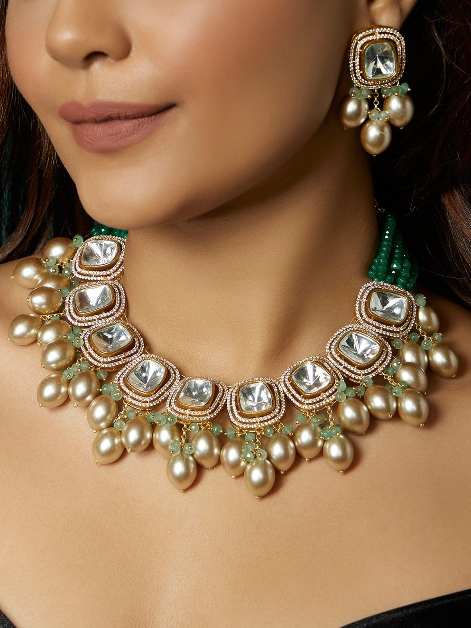 Joules By Radhika Gold Tone Kundan Polki Beige Necklace Set
