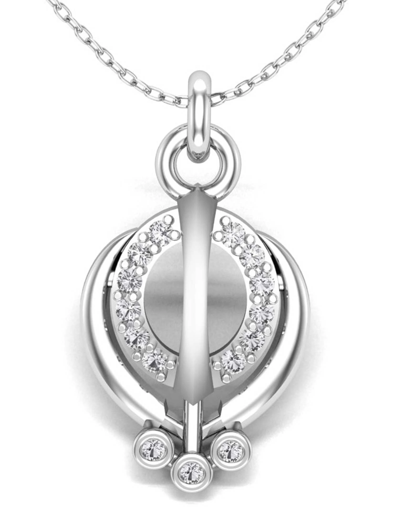 KUNUZ 925 Sterling Silver Ek-Onkar Shape American Diamond Studded Pendent for Women. It is made from pure 92.5% Sterling Silver and studded with high-quality AAA Cubic Zirconia which makes them very skin-friendly.