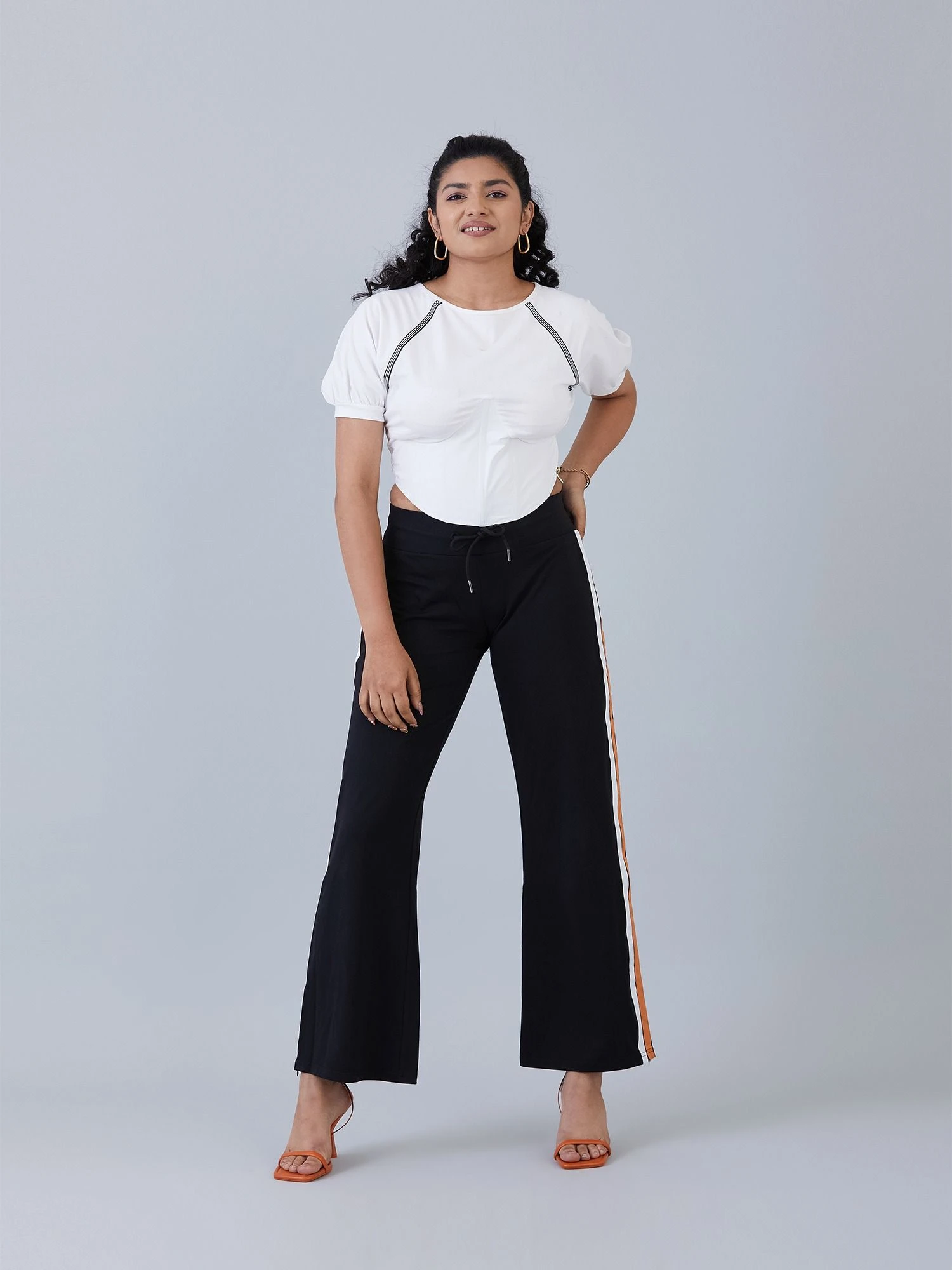This corset top is a beautiful blend of cotton lycra jersey & cotton poplin that is sure to make a statement whether paired with jeans or pants.