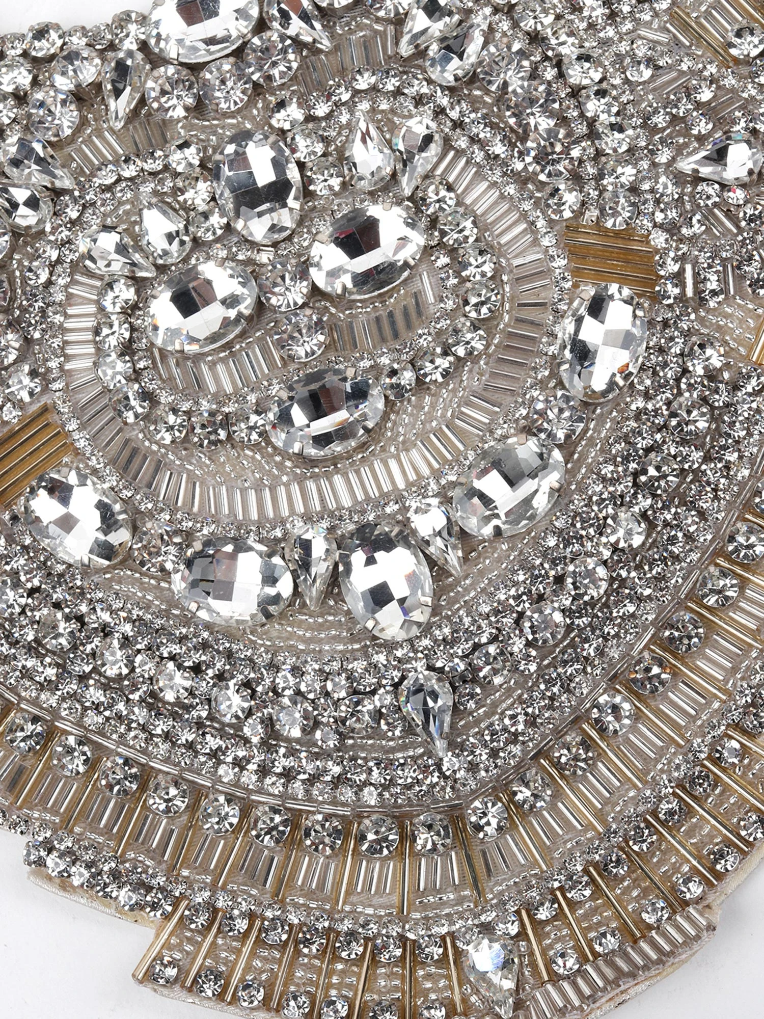 Featuring this aristocratic heavily embellished with clear crystals plastron necklace, the built of this necklaces makes it ideal for being styled with solid coloured tops and dresses. It will instantly pep up your evening look, especially if you wish to channel out a royal-chic avatar.