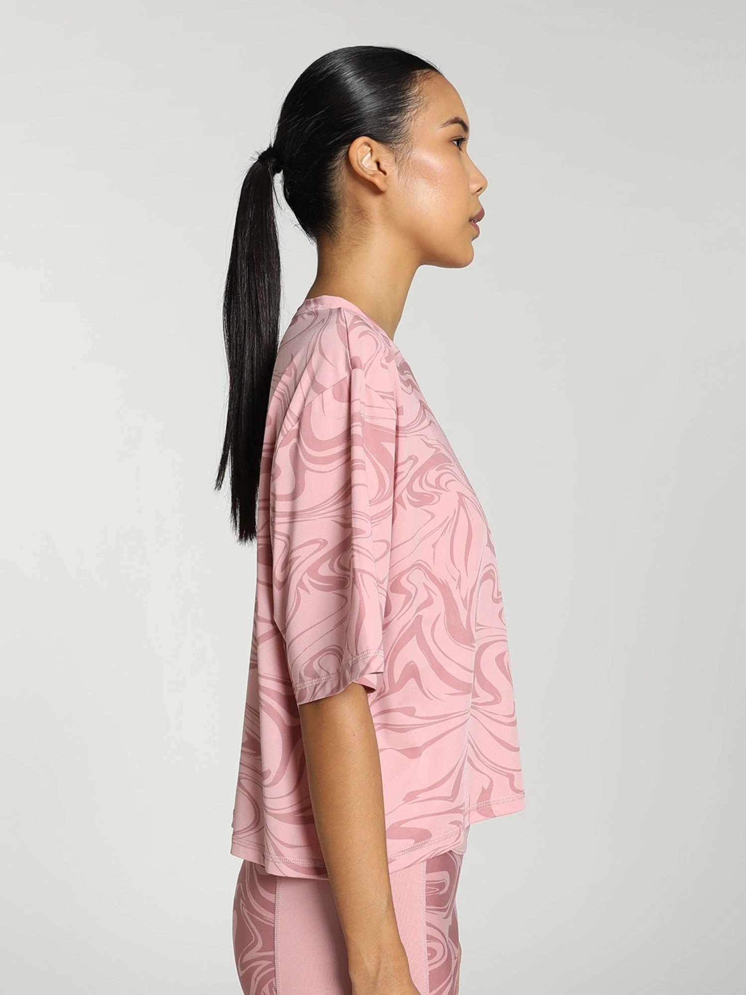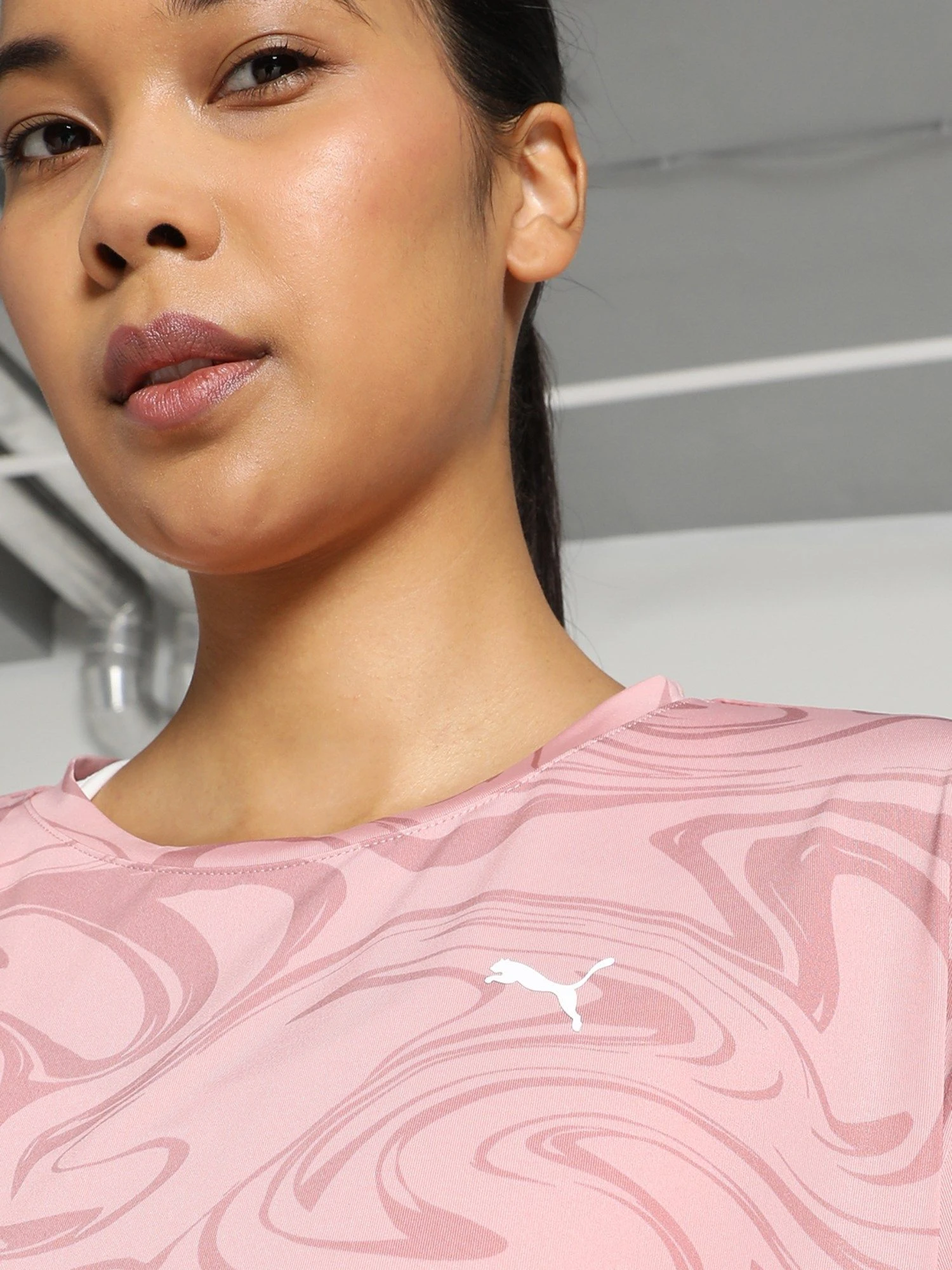 PRODUCT STORY : Fitness lovers, say hello to your new fave training tee. The boxy fit and cropped cut make for a look that’s both stylish and comfortable, so you can hit your workout feeling on top of your game. FEATURES & BENEFITS : Recycled Content: Made with at least 70% recycled material as a step toward a better future, dryCELL: Performance technology designed to wick moisture from the body and keep you free of sweat during exercise DETAILS : Boxy fit, Skimmer fit length, All-over graphic print, Cropped length
