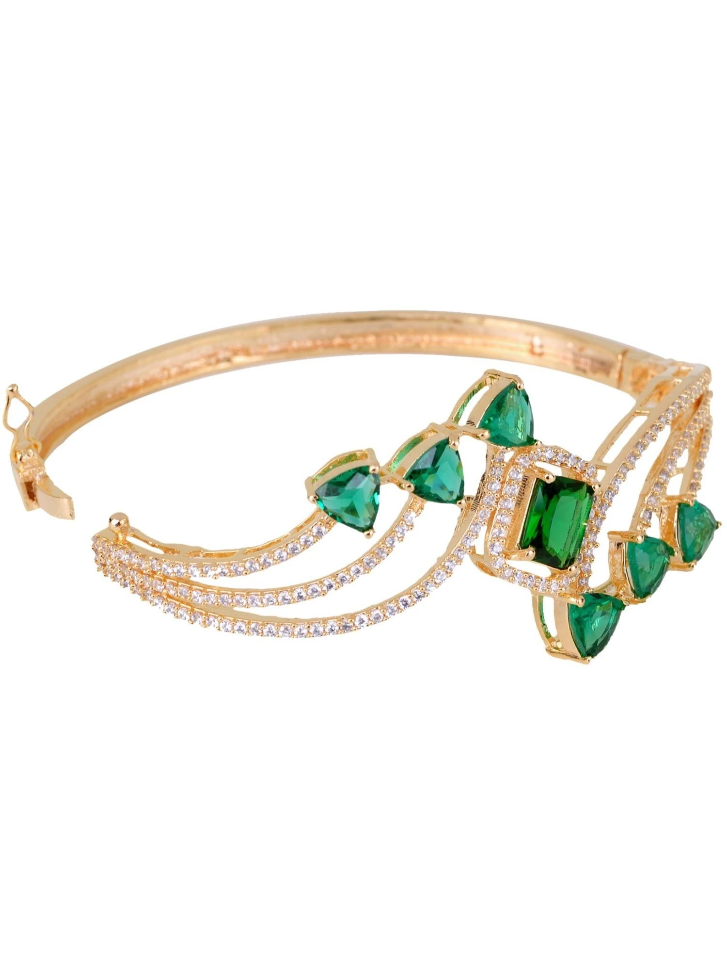 Glam up your look with this bracelet from Saraf RS Jewellery. Beautifully crafted from premium quality brass, this piece has an enchanting gold plating and a rich feel to it. Wear this piece with your favourite party dress to amp up your overall ensemble.