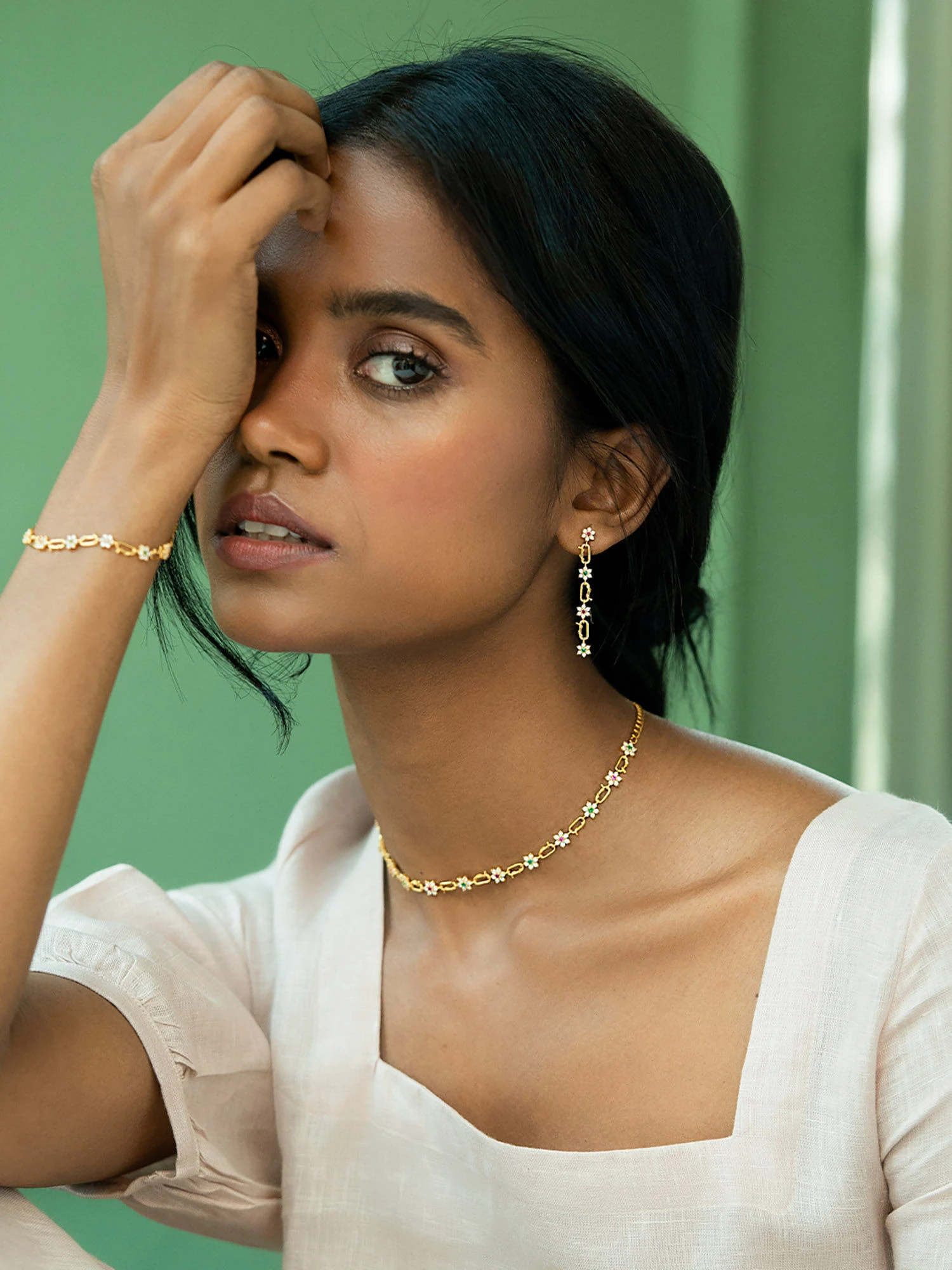 Bracelet Length: 15 cm + 5.1 cm (6 Inches + 2 Inches Adjustable) | Flower Diameter: 0.55 cm | Oval Lenght 0.70 | Oval Breadth: 0.45 cm