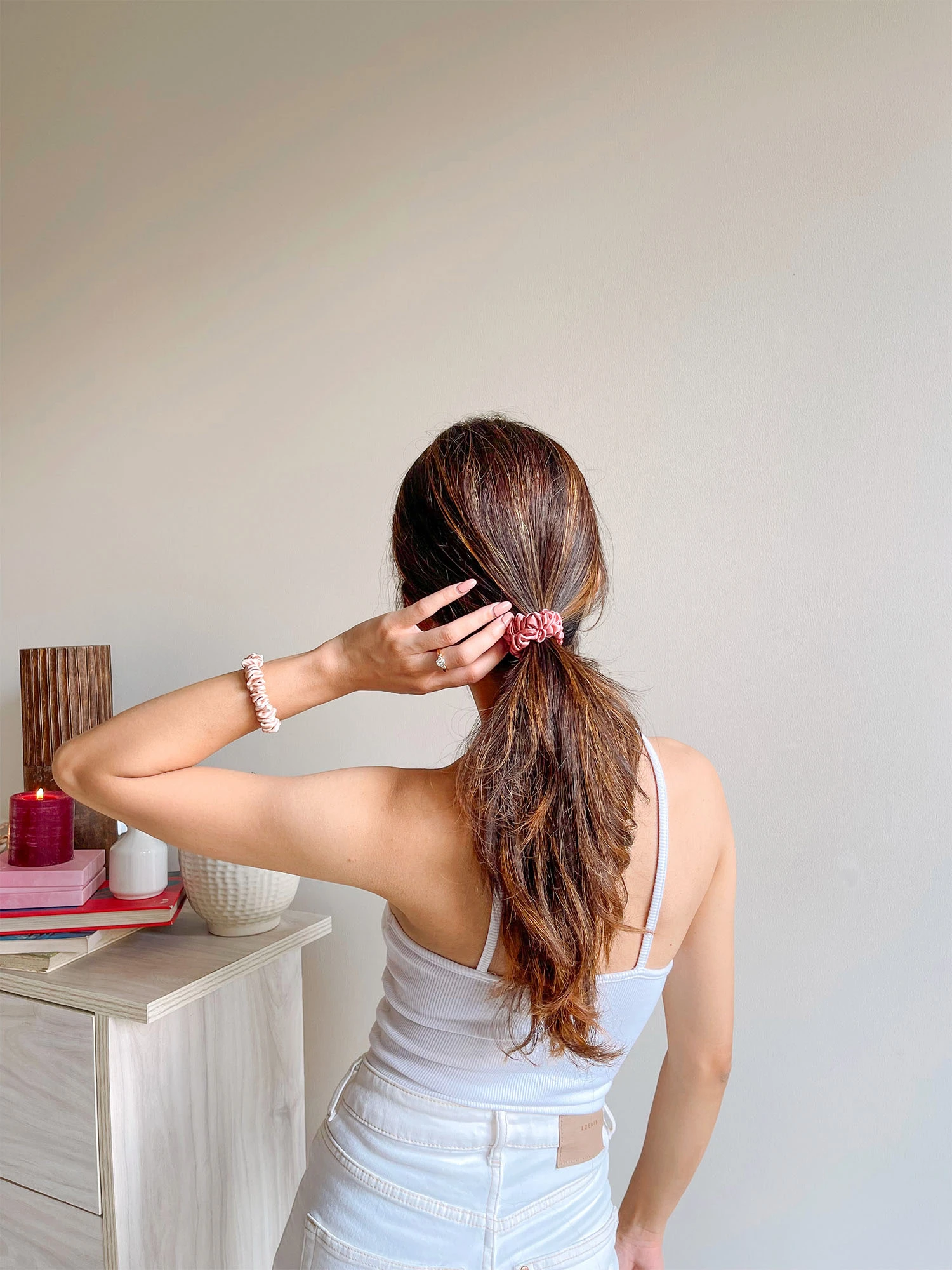 Pamper your hair with the goodness of Pure Mulberry Silk with our ultra-soft and luxurious skinny silk scrunchies from SPOTSTYL. Handcrafted with love and attention to detail, these beautiful day-to-night hair companions make the perfect throw-in-the-bag accessory. 100% Pure Mulberry Silk20 Momme Grade 6A Long ThreadPrevents Hair Damage and Split EndsExtra Gentle on Delicate Hair and Breakage FreeRich in Natural Protein Sericin and Amino AcidsExtra Soft Elastic to Avoid Pulling and Tugging