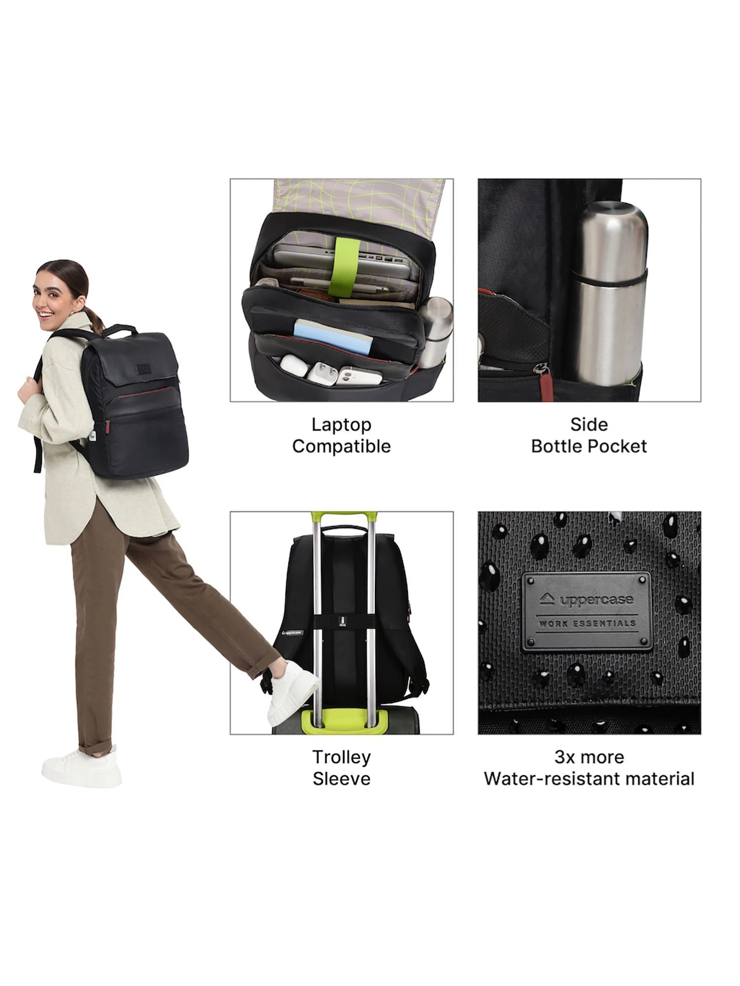 Made of premium quality recycled material. Each part of the bag goes through a series of quality tests to ensure we are delivering the best to you. With the purchase of any uppercase product, you just partnered with us in lowering your carbon footprint and making the world a bit more beautiful.The unique and stylish design of this bag sets it apart from any other backpack. It’s not only functional but also adds a sense of fashion and style to your daily routine. It also has rain proof zippers and is made up of 3x more water resistant material.This backpack is designed with a laptop (15.6″)and tablet compartment, multiple organizers and a quick access pocket for your essentials and a side bottle pocket for your water bottle. The thick shoulder straps provide added comfort for all-day wear. Dimensions : (L x B x H) : 29.5 x 15 x 42.5 cm